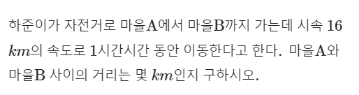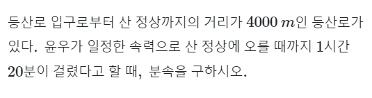 중등 1학년 수학 > 일차방정식의 활용 > 거리, 속력, 시간 공식과 기초 연습문제 프린트 학습지