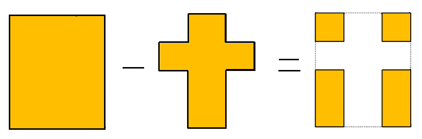 큰 사각형의 넓이 - 십자가 모양의 도형의 넓이 = 귀퉁이에 있는 네 사각형의 넓이