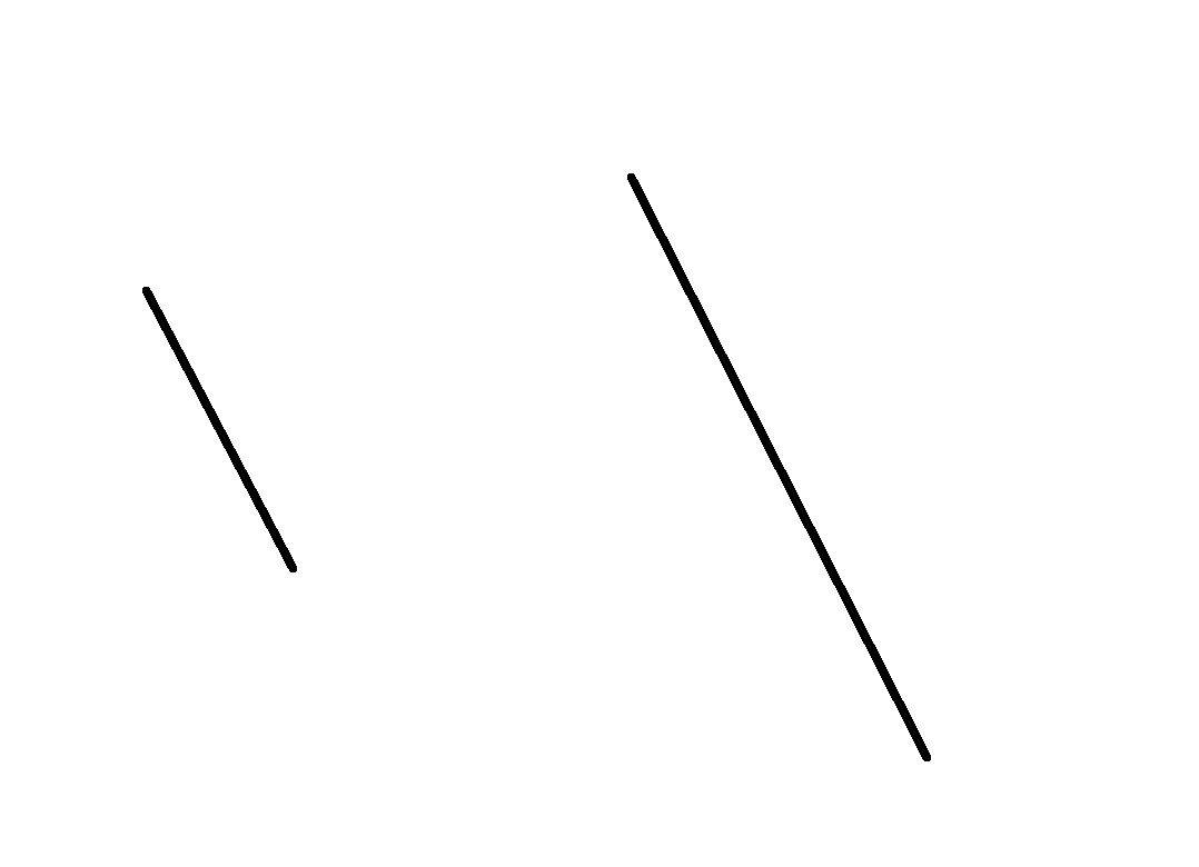 만일 2개의 선분이 있다고 하면 길이를 비교할 수가 있는데요, 길이를 비교해보면 왼쪽의 선분과 오른쪽의 선분의 길이가