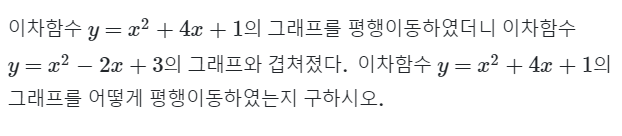이 문제를 통해 이차함수의 그래프를 평행이동시켜 다른 이차함수와 겹치는 방법을 배웠습니다.